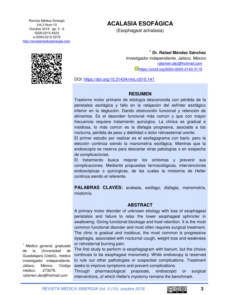 La acalasia es un trastorno poco común del esófago que causa dificultad para tragar sólidos y líquidos, regurgitación de alimentos hasta la boca y pérdida de peso. Aunque no se conoce la causa exacta de la acalasia, se cree que está relacionada con daños en los nervios del esófago. El diagnóstico se realiza a través de examenes específicos y el tratamiento puede incluir la colocación de un balón en el esófago, la inyección de toxina botulínica o cirugía. Es importante buscar atención médica si se presentan síntomas.