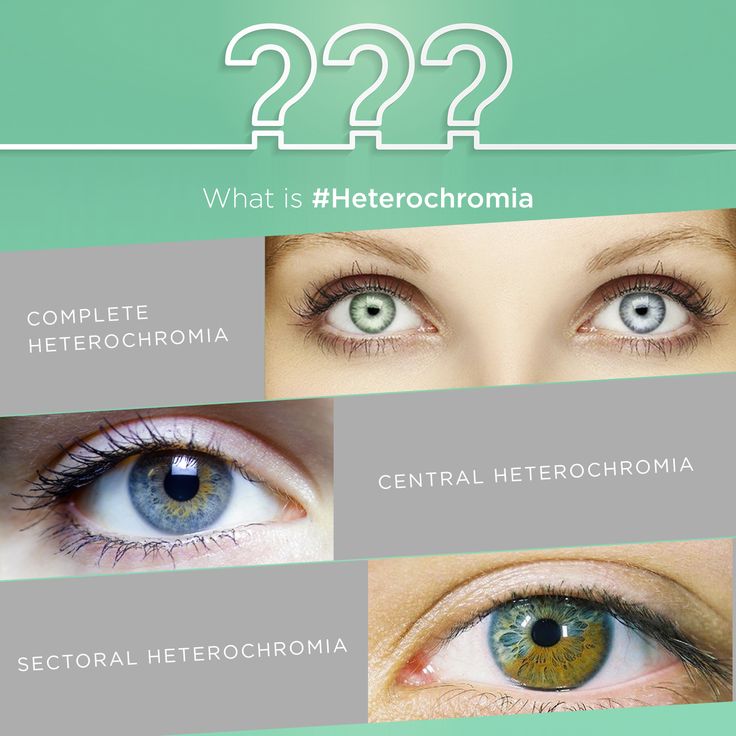 Existen diferentes tipos de heterocromía, como la heterocromía completa, central y setorial. En la heterocromía completa, cada ojo tiene un color completamente diferente. En la heterocromía central, los ojos tienen dos colores diferentes, con un color cerca de la pupila y otro color en la borda. Por último, en la heterocromía setorial o parcial, un ojo presenta dos colores diferentes en forma de fatia o en cada mitad del ojo.
