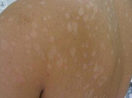 - Manchas o placas múltiples en la piel, bien delimitadas y ovales o redondas.
