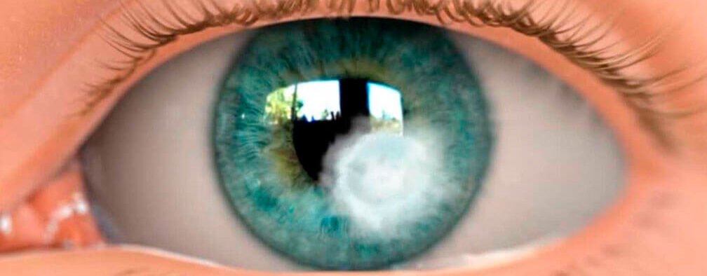 La úlcera de córnea, una herida abierta en el ojo que puede causar dolor intenso, enrojecimiento y visión borrosa.